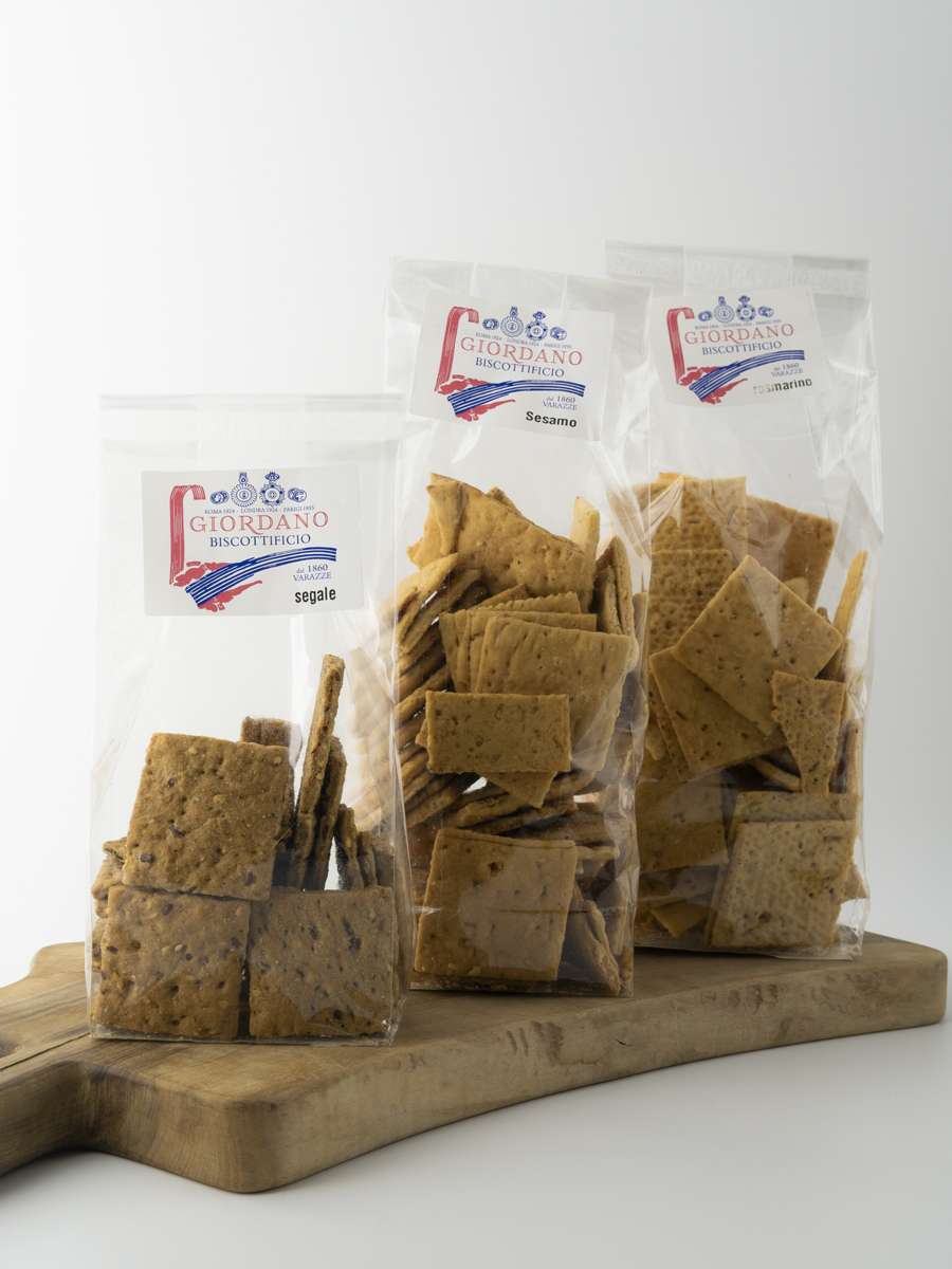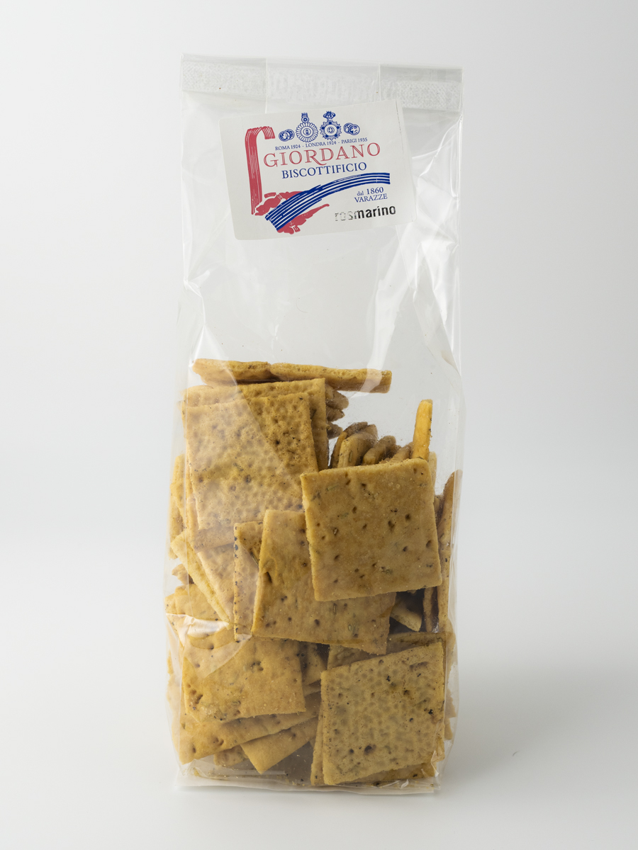 Descrizione : I Salatini Giordano al rosmarino sono realizzati artigianalmente seguendo i procedimenti di una volta. Sono ottimi snack per il pomeriggio, oppure sono gustosi da servire come aperitivo accompagnati da formaggi ed affettati vari. Arricchiti da rosmarino in superficie.